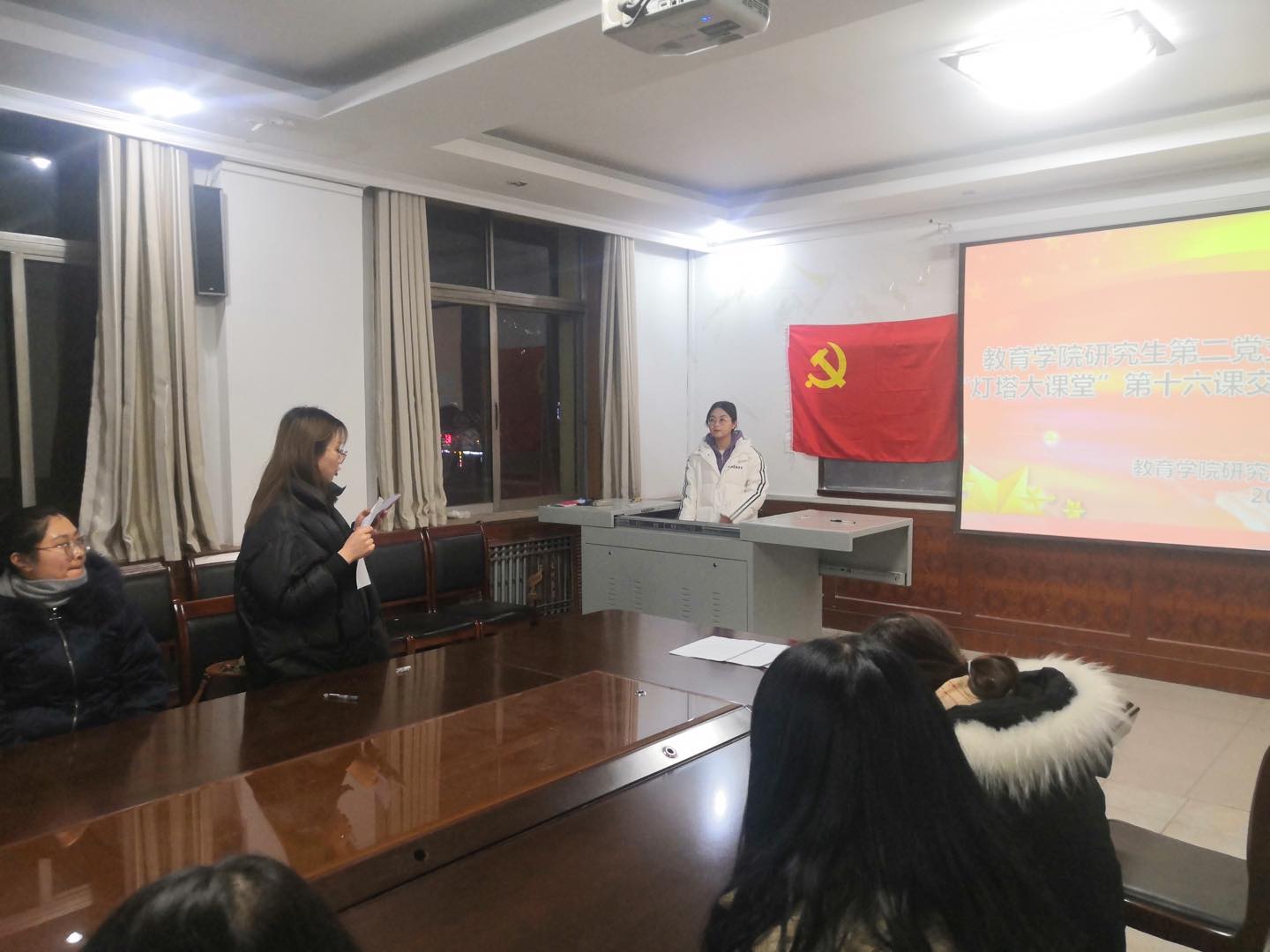 研究生第二党支部于系楼305教室开展“反邪教基本知识宣讲”主题党日活动与“灯塔大课堂”第十六课交流研讨活动。活动由研究生第二党支部书记潘婷主持,支部全体党员参加活动。