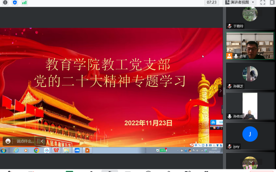 教工党支部线上开展党的二十大精神专题学习活动,全体教工党员参加学习,活动由教工党支部书记齐军主持。