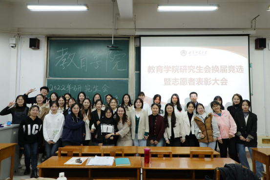 2022年研究生会换届竞选暨志愿者表彰大会在综合楼205教室顺利举行。研究生辅导员商雪敏老师、迎新志愿者、2020级研究生会成员、2021级研究生全体成员参与了此次换届与表彰大会。会议由2020级研究生会主席张雨晴主持。