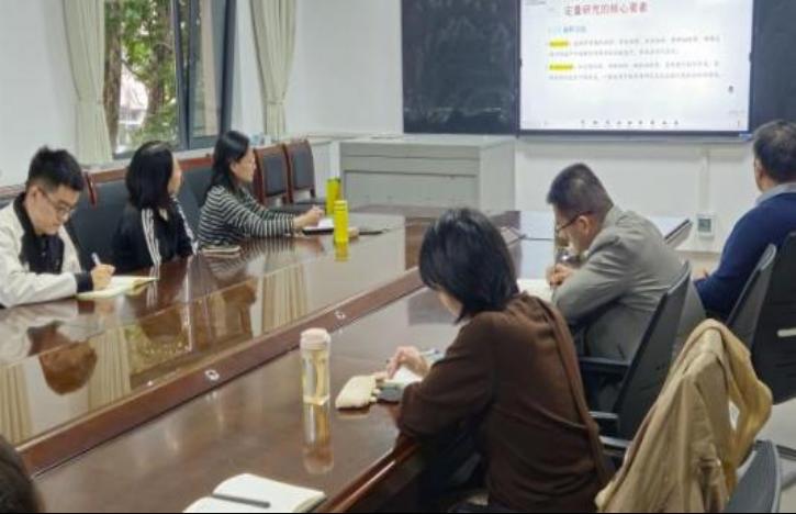 首先,安敏副教授围绕定量研究展开专题汇报,系统阐述了定量研究的基本框架、核心要素、数据处理与分析方法,并结合英文论文写作与发表流程,提出一系列实用建议。重点解析了定量论文各部分的写作规范,强调了学术写作应遵循的基本要求。