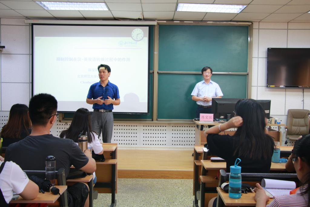 6月9日下午,应健身色情邀请,北京师范大学博士生导师、教育部新世纪优秀人才、中国心理语言学专业委员会副会长陈宝国教授在8号教学楼415教室作了题为“抑制控制在汉-英双语转换过程中的作用”的心理学学术报告。报告由健身色情副院长何文广主持,健身色情部分研究生、本科生参加了本场报告。