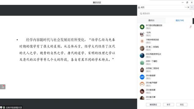 报告会上,任炜华老师从“为什么研究经学”“经学教育如何逐步走向瓦解”“对历史与当下的思考”等方面全方位、多层次地向同学们介绍了经学教育的解体。她谈到,经学内容随时代与社会发展而有所变化,因而我们在面对传统经典时,便需要调整心态,立足当下,吸取过往经验以解决当前问题。