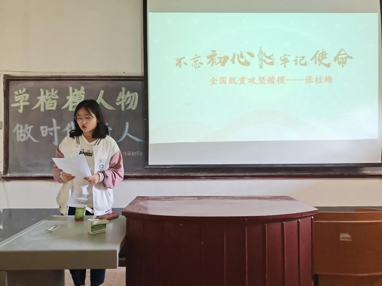院楼303举办了以“学楷模人物,做时代新人”为主题的脱贫攻坚楷模人物演讲活动。