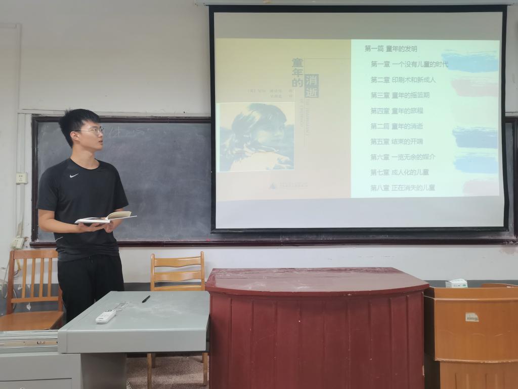 2020级小学教育班的王龙飞同学分享的书籍是《童年的消逝》。时代不断发展,科技日新月异的进步,信息流通形式的改变,逐渐打破成人世界与儿童世界的界限。他认为社会各界应该行动起来,保护儿童天真、善良、单纯、自由的童年。