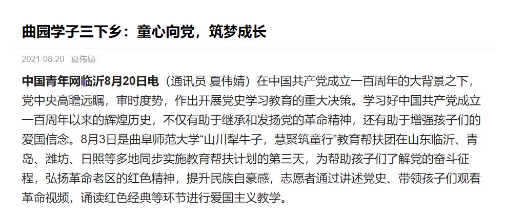 上一条:中青网:曲园学子三下乡:回溯百年党史,点亮海岸星火