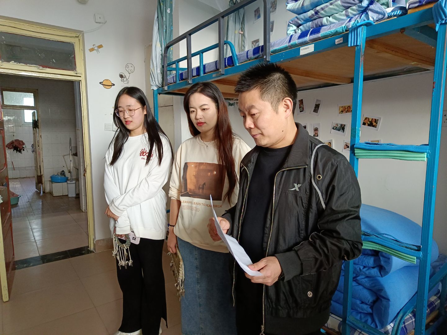为创造学生安全良好的生活环境,进一步提高学生宿舍安全保障,10月27日下午,教育健身色情 党委副书记孙超、团委书记周长缨、辅导员张东霞、商雪敏等深入学生宿舍,开展用电安全隐患排查和内务卫生检查工作。