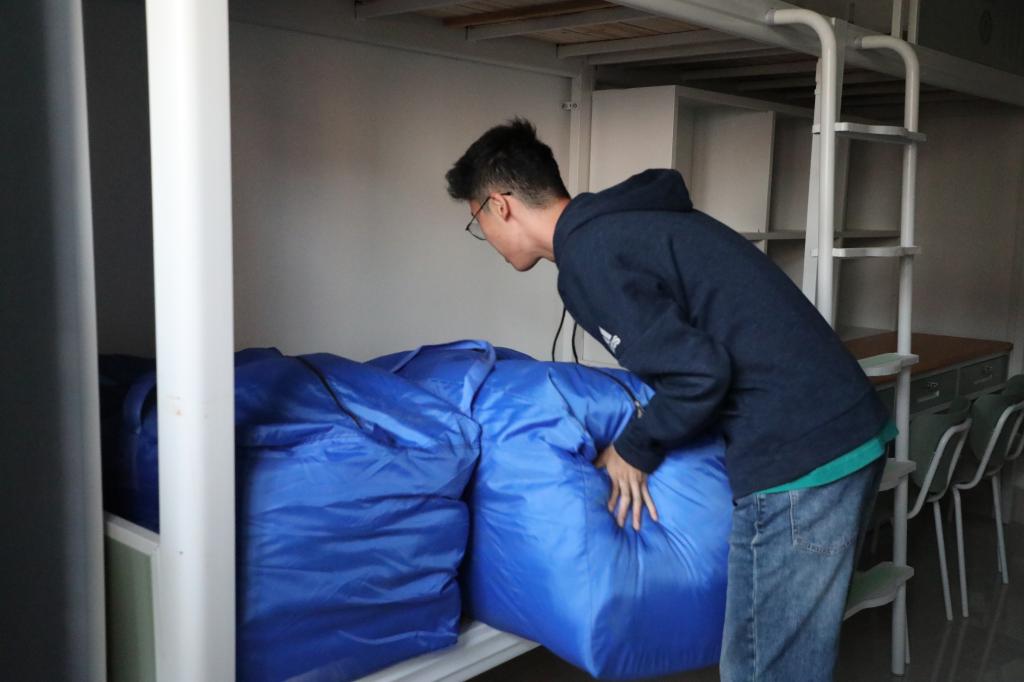 搬运分发现场,同学们互帮互助、协同合作,有序将被褥从货车搬运分发到每一个新生宿舍,为新生提供贴心的服务,保证新生入学后顺利入住。搬运分发过程分工清晰、高效有序。最终,在大家的共同努力下,工作得以圆满完成。