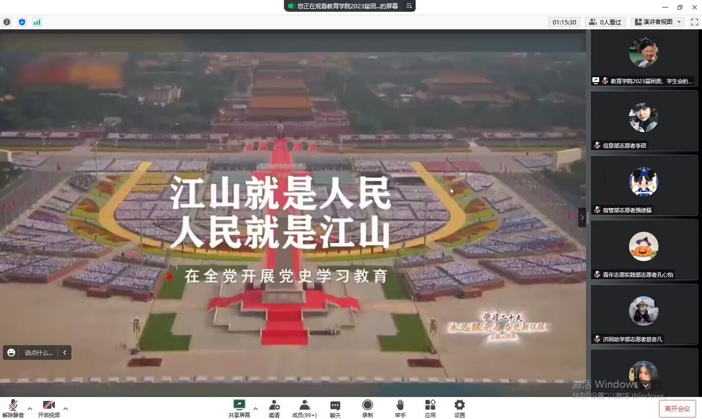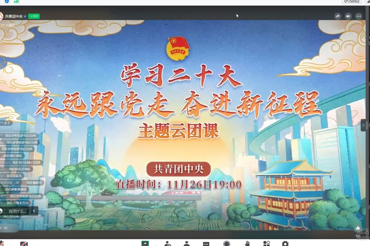 组织学生干部集中收看共青团中央“学习二十大,永远跟党走,奋进新征程”主题云团课。