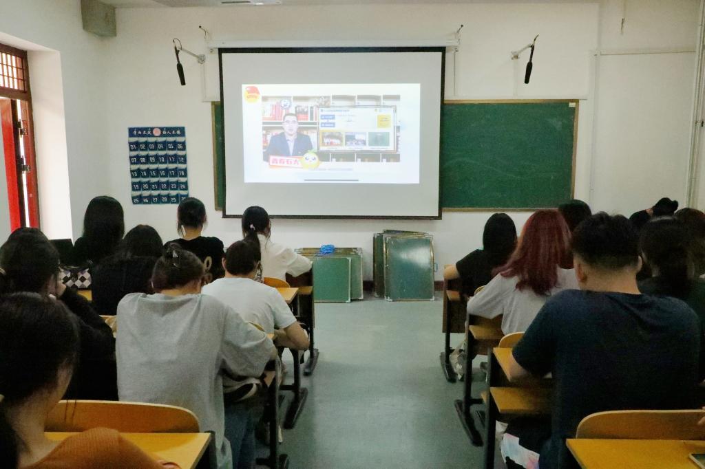 106教室集中观看学习“高校共青团改革沙龙”直播活动。