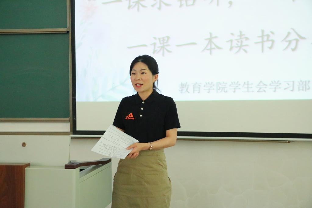 的读书分享汇活动是必要且有效的,希望同学们能树立终身学习意识、培养终身学习能力、实现终身受教育,通过学一门课读一本书,学原文读原著悟原理,为未来的人生发展打下良好基础。