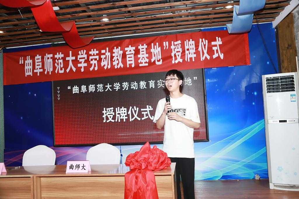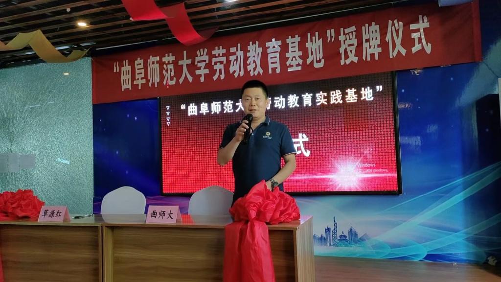 仪式上,孙超书记向连宇董事长授牌并讲话。他首先向以连宇女士为代表的乡村振兴带头人对新时代大学生深入社会和企业一线开展劳动教育实践的大力支持表示感谢,对劳动教育实践基地的建设发展以及学生开展劳动教育实践提出希望和要求。他指出,校企双方要加强合作,深化劳动教育内涵交流,依托实践基地建设促进学生成长成才,助力乡村振兴事业发展;同时希望以曲阜师大教育健身色情