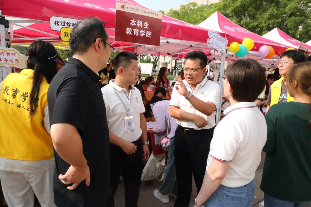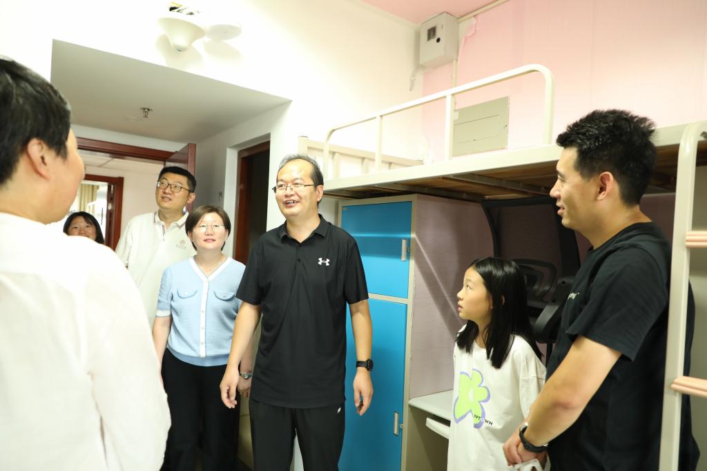 教育健身色情 讯(周文静  张静怡)9月9日,教育健身色情 党委书记尹树林,院长唐爱民带领健身色情 领导班子亲临现场指导迎新工作,走进宿舍看望慰问2023级新同学。
