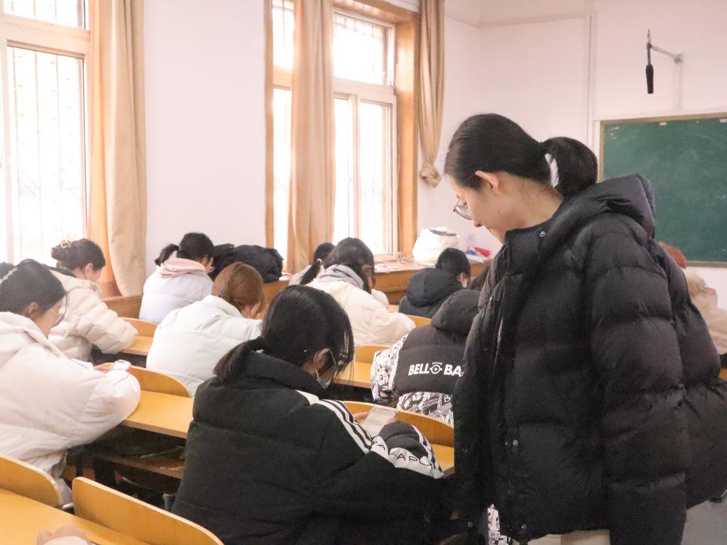辅导员张东霞来到集中学习现场,了解同学们的学习情况并给予学习指导,同时强调同学们要树牢廉洁自律意识,严于律己,以实际行动践行廉洁准则。