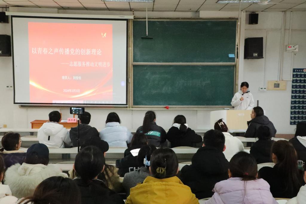 会上,院团委组织部副部长刘佳怡带领学生会成员集体学习新时代大学生志愿精神,帮助同学们深入了解志愿服务的同时,深化了大家对于雷锋精神的认识,激发了同学们学习雷锋精神、争做时代先锋的热情,进一步提高了同学们的思想觉悟和理论水平。