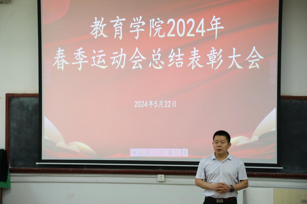 对全体教练员、运动员和服务保障人员的辛勤付出表示衷心感谢,对本次运动会上取得优异成绩的运动员们表示热烈祝贺,对同学们在冬春训及运动会上的出色表现给予充分肯定。他指出,体育精神是健身色情