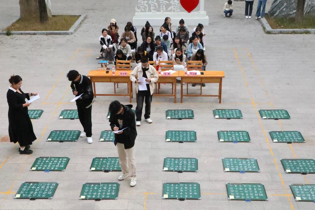 本次大赛设有毛笔、钢笔、粉笔三个项目,参赛选手可任选其一,并在规定时间内完成指定作品。比赛过程中,参赛选手心无杂念,一丝不苟,提笔自信泰然,笔端尽显专注之态。
