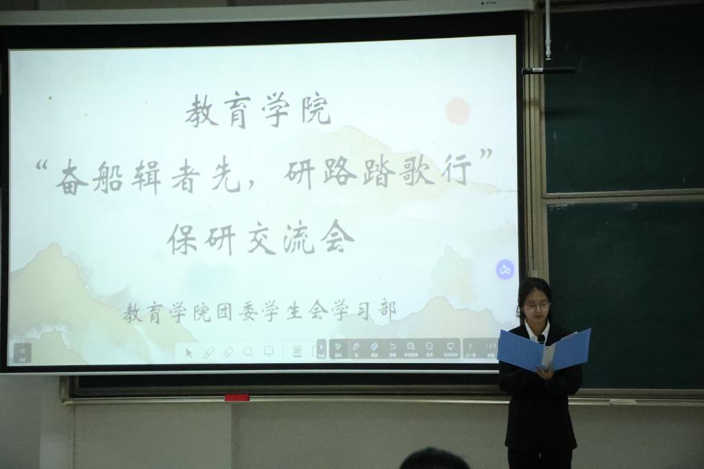 团委学生会学习部主办的“奋船辑者先,研路踏歌行”保研经验交流会于综合楼401室顺利举办。活动邀请已成功获取研究生推免资格的2021级优秀学生代表作经验分享,健身色情