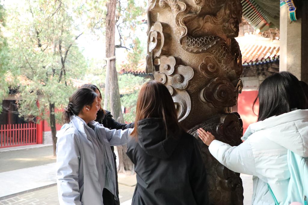 经过前期精心筹划安排,参加研学实践的同学们以班级为单位划分为多个小组,每个小组设置组长、副组长,以确保活动安全有序。活动当日,同学们在孔子文化广场集合,徒步行至万仭宫墙前合影留念。同学们先后参观了孔庙的五庙、一阁等古建筑,身临其境地感受儒家文化的深厚底蕴,加深了对“仁、义、礼、智、信”的理解。随后,同学们步入孔府,孔府的建筑风格和内部布局都体现了严格的礼教和宗法制度,同学们从中了解到古代社会的等级制度和生活细节。在参观孔林的过程中,新生感受到家族延续的力量和对祖先的崇敬之情。