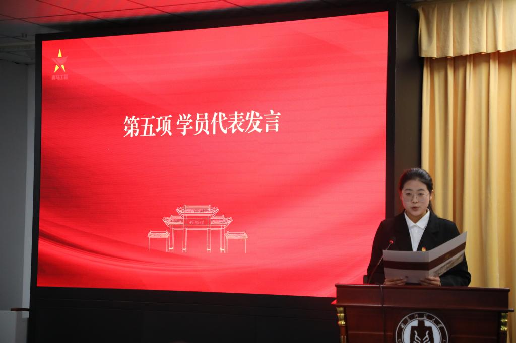 最后,2023级小学教育一班刘可嘉作为学生代表发言。她表示,作为“青马”班学员要以身作则,在理论学习中提高思想认识,在社会实践中坚定理想信念,认真学习,严守纪律,保质保量完成培训班各项任务。