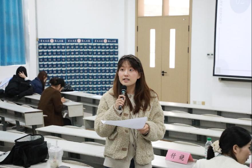 李文美老师、张帅老师和2022级社会实践优秀学生代表付娆担任评委。