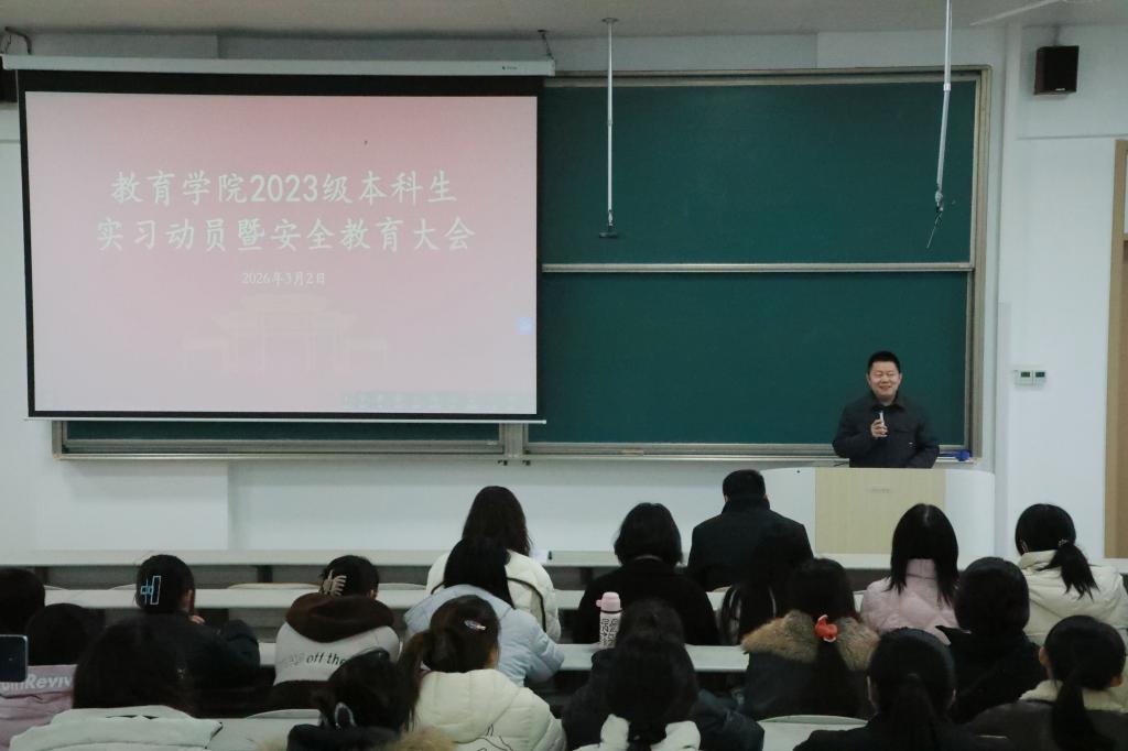 此次大会进一步明确了实习目标任务与规范要求,帮助同学们坚定了教师职业理念,强化了安全防范意识与教育责任担当,有效激发了大家参与实习的主动性与积极性,助力同学们平稳完成从学生到准教师的角色转变,为安全顺利地完成实习任务奠定了坚实基础。